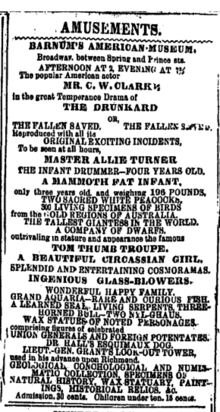 "Barnum's American Museum", operated by P.T. Barnum, was located on the corner of Ann Street, Vesey Street, Park Row, and Broadway. It was one of the most popular showplaces in the United States during the 19th century. Barnum made a special hit in 1842 with the exhibition of Charles Stratton, the celebrated midget "General Tom Thumb", as well as the Fiji Mermaid which he exhibited in collaboration with his Boston counterpart Moses Kimball. The line in the Charles Ives song, Barnum's Mob, Ann Street, refers to the crowds drawn to see the curiosities at this museum.