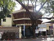 When Anna Nagar was developed as a model town in the late 1960s, the annual vilakku pooja during the mandala makaravilakku season was celebrated by Ayyappa devotees in the newly formed Shanti Colony. The residents' response to this annual celebration resulted in the formation of the Sri Ayyappa Seva Samajam (SASS) in 1976, with 14 members in its committee. In 1979, the Samajam started a charitable medical centre for the poor and needy.[1] The same year, a 7-ground land near the Visveswarayya Tower was allotted to the Samajam by the Tamil Nadu Housing Board for the construction of a temple, for which members contributed ₹ 38,000 towards initial payment.[1] Initially, a makeshift temple was built in a thatched shed along with a charitable medical centre in another shed.[2] Work on the construction of a permanent temple continued for the next five years in consultation with temple architect Kanipayyur Krishnan Namboodiri. The construction was guided by P. N. Subramaniam, the founder-president, P. Chandrasekhara Menon, the second president, and P. V. Nair, and financial support was provided by R. Ratnam, then chairman of Sundaram Industries, and P. Velayudham.[1] In May 1984, the typical Kerala-style temple was completed, conforming to the traditional shastraic stipulations. The kumbabishekam and consecration of the idol were performed on 13 May 1984 by temple Thantri Abli Krishna Vadhyan Namboodiri and K. M. Kesva Battatripad, former chief priest of the Sabarimala Temple.[2] The panchaloka Ayyappan idol was made by Chenganur T. Rajarathinam.[1] Idols of Ganesha, Subramanya, Goddess Durga, and Anjenaya were also consecrated. Later, a Navagraha (the nine planets) shrine was added in the temple. In 1989, a unique architectural structure known as the Natamandapam with an imposing gopuram was added. In 2005, gold covering of the 22-paras (segments) dwajasthambam and 27 thazhikakudams with about 6 kg of gold was completed. A special kumbabishekam of the gold-covered dwajasthambam was performed on 20 June 2005.[2]