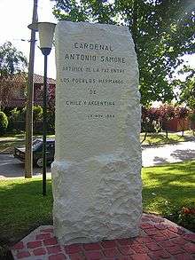 From 1978 to 1983, he acted as a special representative of Pope John Paul II, later earning Samorè the nickname "the Vatican Kissinger",[2] to operate a mediation between Chile and Argentina, in the brink of war, because of a disagreement concerning the ownership of the strategic Picton, Lennox and Nueva islands during the Beagle conflict. The international pass of Puyehue, that links Osorno in Chile with Bariloche (Argentina) was later renamed after him as Cardenal Antonio Samorè Pass.