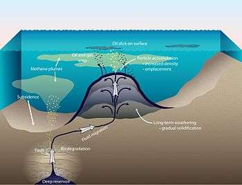 - ↑ Hovland, M.; MacDonald I.R.; Rueslåtten H.; Johnsen H.K.; Naehr T.; Bohrmann G. (2005). "Chapopote Asphalt Volcano May Have Been Generated by Supercritical Water" (PDF). EOS. 86 (42): 397–402. Bibcode:2005EOSTr..86..397H. doi:10.1029/2005EO420002. Retrieved 2010-04-30.