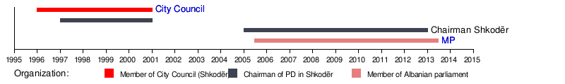 - 1996–2001: Member of Municipal Council, Shkodër