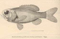 Aulotrachichthys prosthemius, also known as the West Pacific luminous roughy, is a species of slimehead in the genus Aulotrachichthys.[1] It can be found across the north Pacific Ocean from Hawaii to Japan.[1] It can be found at depths ranging from 90m to 198m, either in open water or near crevices and caves.[1] It has a maximum length of 6.1cm.[1]