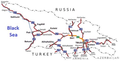 There are three types of autoroutes in Georgia, namely international routes, state routes and local routes.
