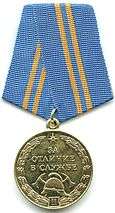 Awarded to personnel of the Ministry for Emergency Situations of Russia and other Russian citizens for long and fruitful activity in the prevention and suppression of fires in critical public facilities. Original Order number and date are unknown, the 2010 Order is a revision of this award.[2][3][4] |