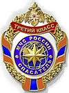Awarded to personnel of the Russian Ministry of Emergency Situations (including services, agencies, institutions and organizations attached to the ministry) with seniority of at least 10 years within the ministry, for the effective implementation of high quality regulations to prevent, predict and mitigate the effects of fires, and the implementation of special supervisory and control functions on matters within the competence of the Ministry of Emergency Situations of Russia, and to other citizens for outstanding contribution to the development and improvement of preventive measures in the field of fire safety.[2][3] |