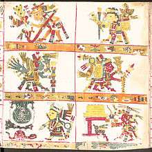 Aztec mythology is the body or collection of myths of Aztec civilization of Central Mexico.[1] The Aztecs were Nahuatl-speaking groups living in central Mexico and much of their mythology is similar to that of other Mesoamerican cultures. According to legend, the various groups who were to become the Aztecs arrived from the north into the Anahuac valley around Lake Texcoco. The location of this valley and lake of destination is clear it is the heart of modern Mexico City but little can be known with certainty about the origin of the Aztec. There are different accounts of their origin. In the myth the ancestors of the Mexica/Aztec came from a place in the north called Aztlan, the last of seven nahuatlacas (Nahuatl-speaking tribes, from tlaca, "man") to make the journey southward, hence their name "Azteca." Other accounts cite their origin in Chicomoztoc, "the place of the seven caves," or at Tamoanchan (the legendary origin of all civilizations).