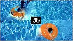 The black box logo was retained from the previous look but moved to the centre of the screen to divide the four segments.[5][6][7] Promotional style also changed. The BBC Four logo would remain in the bottom corner of the screen throughout the promotion, but would be overlaid by the programme information in an opaque coloured box in the lower right segment of the screen, with the BBC Four logo in the centre.[5][8] This was altered in 2008 to a BBC Four box appears in the middle of the screen from which the video is wiped out anticlockwise round the logo from the right revealing the programme information to the right of the logo.[8]