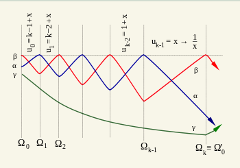 38. Fixing the limits of the era according to eq. 64 is meaningful because in such case the era contains all epochs in which the third function, γ(t) decreases monotonously. If the era is defined by the sequence of u values from k + x to 1 + x, then the monotonous decrease of γ(t) will continue during the first epoch of the next era.
