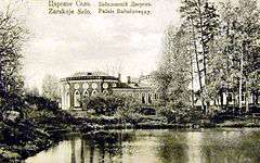 It was in 1780 that Catherine II of Russia presented the grounds adjoining the Catherine Park and the Alexander Park to her then-favourite, Potemkin. A temporary wooden palace was built to house the lovers' trysts. It was rebuilt in stone to a Gothic Revival design by Ilya Neyelov between 1782 and 1785.[1] The Babolovsky Palace was essentially a summerhouse with seven rooms giving on to a park, a quaint octagonal tower and no second floor.