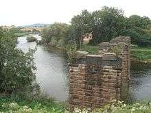 The legacy of the Beeching Axe with the bridge decking spanning the River Wye demolished on Backney Bridge.