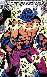 The Badoon are a reptilian alien species in the fictional Marvel Comics universe. They are notable for living under strict gender segregation, resulting in two separate societies; the Brotherhood of Badoon (ruled by a "Brother Royal") and the Sisterhood of Badoon (ruled by a Queen).
