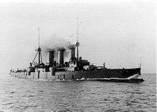 In preparation for the next attempt to break the Greek blockade, the Ottoman Admiralty decided to create a diversion by sending the light cruiser Hamidiye, captained by Rauf Bey, to raid Greek merchant shipping in the Aegean. It was hoped that the Georgios Averof, the only major Greek unit fast enough to catch the Hamidiye, would be drawn in pursuit and leave the remainder of the Greek fleet weakened.[81][87] In the event, Hamidiye slipped through the Greek patrols on the night of 14–15 January and bombarded the harbor of the Greek island of Syros, sinking the Greek auxiliary cruiser Makedonia which lay in anchor there (it was later raised and repaired). The Hamidiye then left the Aegean for the Eastern Mediterranean, making stops at Beirut and Port Said before entering the Red Sea. Although providing a major morale boost for the Ottomans, the operation failed to achieve its primary objective, as Kountouriotis refused to leave his post and pursue the Hamidiye.[81][87][88]
