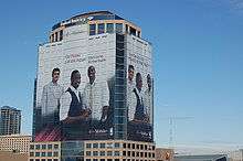 In February, 2009, the east and south faces of the tower were covered with T-Mobile branded messages in anticipation of the 2009 NBA All Star Game. Elite Media, Inc. of Las Vegas completed installation of Phoenix’s Largest Ad on the exterior of the Bank of America Tower in Downtown Phoenix. The south façade ad stood at 190' tall by 188’ wide, and the east façade ad at 190’ tall by 94’6” wide. The 53,694 total square feet of ad space was formed out of over 1400 individual panels to create the large mural images. The Elite Media Wall System panels measured at 4’ x 20' and each was constructed out of a unique, weather-resistant, "see-through," perforated, adhesive material. Job installation took two weeks and required 5 installers hanging from scaffolding off the 380-foot (120 m) façade.