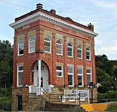 Bank of Cairo, now known as Cairo Town Hall, is a historic bank building located at Cairo, Ritchie County, West Virginia. It was built in 1897, and is a 2 12-story brick structure with classically inspired details. It features a unique corner entrance. It housed a bank from 1897 to 1931 and from 1941 to 1974. It now houses the Cairo Town Hall and serves as a stop on the North Bend Rail Trail.[2]