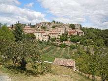 is registered as an historical monument.[7] - The Medieval village and the ruins of the Chateau of Banne