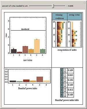 - Seth J. Chandler (2007), "Banzhaf Power Index", The Wolfram Demonstrations Project.