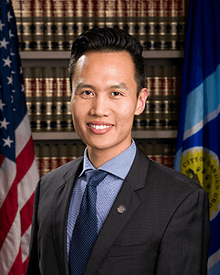 Nguyen defeated incumbent Bruce Broadwater by 15 votes in the 2014 election to become mayor of Garden Grove. He also became the first Vietnamese-American mayor of the city.[9] As mayor, he sought to improve government transparency and accountability, and to engage voters by making city finance records available online.[10][11][12] Nguyen was appointed by the state governor to the Orange County Fair and Event Center Board of Directors.[1][13] He resigned the position in 2015.[13]
