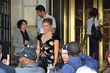 Refaeli got engaged to Israeli businessman Adi Ezra in March 2015. She has stated she plans to raise "a big Jewish family" with him. The couple were married in Israel on September 24, 2015.[49][50] Refaeli publicly revealed on December 31, 2015 that she was pregnant.[51] In 2016 she gave birth to a daughter named Liv Ezra.[52][53][54]