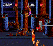 Players can choose from ten "streetwise" players, not including Sir Charles himself, as they play in either an exhibition game or tournament. Since this is basketball on the street, players compete in eight different urban environments featuring graffiti, rubble, and even a moving train. More than 2000 player animations have been included to show moves such as behind-the-back passes, double-clutches, alley-oops, and 25 different dunks. Battery backup allows players to save tournament progress, as well as individual records such as triple doubles, total wins, and total losses.