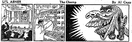 In 1946, Wolverton won a contest to depict "Lena the Hyena", the world's ugliest woman, a running gag in Al Capp's Li'l Abner newspaper strip where Lena remained unseen beneath an editorial note stating her face had been covered to protect readers. Capp, responding to popular demand, announced a contest for artists to submit their interpretations. Among 500,000 entries, Wolverton's was the winner;[5] it appeared in a Li'l Abner daily and Life magazine. Wolverton's fame briefly led to Life and Pageant printing his caricatures. The Lena portrait typified the unique "spaghetti and meatballs" style he employed regularly thereafter.[3]