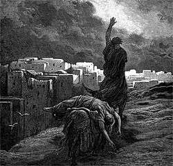 When the men would not be dissuaded, the Levite thrust the concubine out the door. They abused her all night, not letting her go until dawn, when she collapsed outside the door, where the Levite found her the next morning. Finding her unresponsive, he placed her on a donkey and continued his journey home. The account does not state when or where the woman died.[11] Upon his return, he carved up her body into twelve pieces which he sent to all the Israelite tribes, demanding revenge.[12]