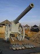 The artillery had two dozen German manufactured Krupp field guns and four heavy French manufactured 155 mm Creusot Long Tom guns.