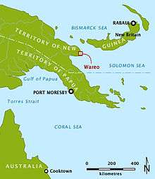 The Battle of Wareo (27 November – 8 December 1943) was fought by Australian and Japanese forces in New Guinea during the Huon Peninsula campaign of World War II in the later part of 1943. Coming after the capture of Sattelberg by the Allies, the battle took place amidst the Australian advance north towards Sio. The Australians committed elements from four infantry brigades from the Australian 9th Division with supporting elements including artillery, engineers and tank support, while the Japanese force consisted primarily of two depleted infantry regiments from the 20th Division, with limited artillery support.