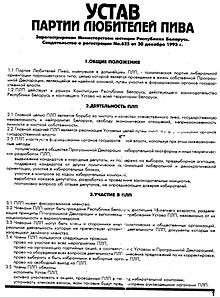 According to its statute, "the major goal of the BLP is the struggle for the cleanness and quality of the national beer, state independence and the neutrality of Belarus, freedom of economic relations, personal inviolability and the inviolability of private property"
