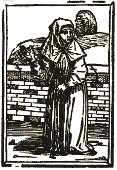 A drawing of a Beguine from Des dodes dantz, printed in Lübeck in 1489.