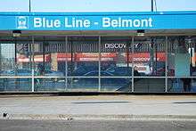 Belmont (or Belmont/Kimball) is a station on the Chicago Transit Authority's 'L' system, serving the Blue Line. The station is located at Belmont and Kimball Avenues in the Avondale neighborhood. From Belmont, trains run at intervals of 2–7 minutes during rush hours, and take 16 minutes to reach the Loop.