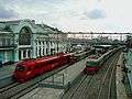 Construction of the railway from Moscow to Smolensk, and then to Minsk and Warsaw, started in the second half of the 1860s. Construction of the station, known as Smolensky, began in late April 1869.[3] A grand opening of the Moscow-Smolensk railway took place on 19 September 1870, the station became the sixth in Moscow. In November 1871 after the extension of the railway to Belarus, the station was renamed Belorussky Station. On 15 May 1910 the right wing of the new station opened, and on 26 February 1912 the left wing opened. The station was designed by architect Ivan Strukov. On 4 May 1912 the railway was renamed the Alexander Railway, the station was renamed Alexander Station.[3] In August 1922 the Alexander and the Moscow-Baltic railways were merged into the Moscow-Belarus-Baltic, so the station was renamed Belorussian-Baltic station. In May 1936 and, after yet another reorganization of the railways, the station received its present name - Belorussky Station.