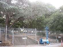 The University of California, Berkeley oak grove controversy arose over the planned removal of a grove of oak trees in preparation for the construction of a new student athletic training center for the University of California, Berkeley.[1][2] Berkeley municipal law prohibits removing any coast live oak with a trunk larger than six inches within city boundaries, but city boundaries do not include the university and the university further claimed an exemption to the city law as a state agency.[3] The university's actions sparked three lawsuits, as well as a tree sit-in that ran from December 2006 to September 2008, when the trees in question were finally cut down.[4][5][6]
