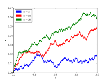 where ||·|| denotes the Euclidean norm in Rn and W is an n-dimensional Wiener process (Brownian motion) started from the origin. The n-dimensional Bessel process is the solution to the stochastic differential equation