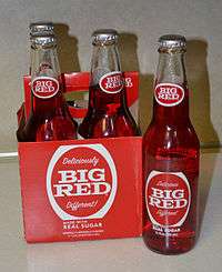 Big Red is a soft drink created in 1937 by Grover C. Thomsen and R.H. Roark in Waco, Texas[1] and originally known as Sun Tang Red Cream Soda. It is generally classified as an American variety of cream soda, and it is the original "red cream soda." The name was changed to "Sun Tang Big Red Cream Soda" in 1959,[2] and to "Big Red" in 1969[2] by Harold Jansing, then president of the San Antonio bottling plant, after hearing a golf caddy refer to the soda by that name.[3]