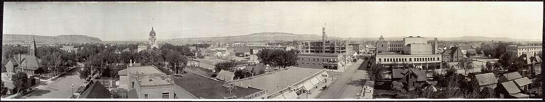 The nearby town of Coulson appeared a far more likely site. Coulson was a rough and tumble town where arguments were often followed by gunplay. Liver-Eating Johnston was a lawman in Coulson.[25] Perhaps the most famous person to be buried in Coulsons Boothill cemetery is Muggins Taylor,[26] the scout who carried the news of Custer's Last Stand to the world. Most buried here were said to have died with their boots on. The town of Coulson had been situated on the Yellowstone River, which made it ideal for the commerce that steamboats brought up the river. However, when the Montana & Minnesota Land Company oversaw the development of potential railroad land, they ignored Coulson, and platted the new town of Billings just a couple of miles to the Northwest. Coulson quickly faded away; most of her residents were absorbed into Billings. Yet for a short time the two towns co-existed: a trolley even ran between the two. But ultimately there was no future for Coulson as Billings grew. Though it stood on the banks of the Yellowstone River only a couple of miles from the heart of present-day Downtown Billings, the city of Billings never built on the land where Coulson once stood. Today Coulson Park sits along the banks of the Yellowstone where the valley's first town once stood.[22]