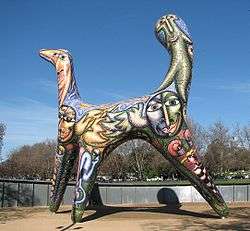 The ten metre high, three-legged Angel was installed along the river bank in 2006. The sculpture was commissioned from Melbourne mosaic artist Deborah Halpern for installation in the ‘moat’ in front of the National Gallery of Victoria in 1985, but off-loaded by the Gallery when major renovations were undertaken in 1999.