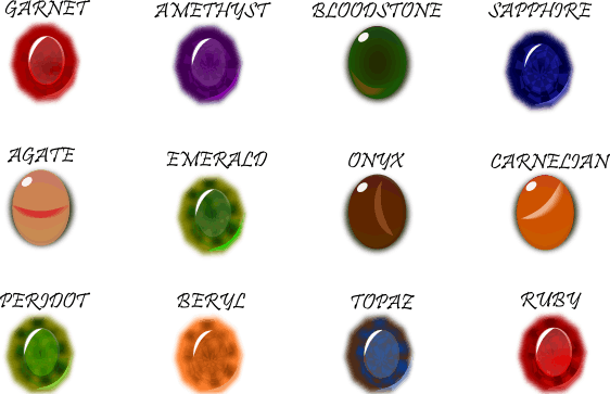 July turquoise, onyx ruby ruby ruby, carnelian sapphire