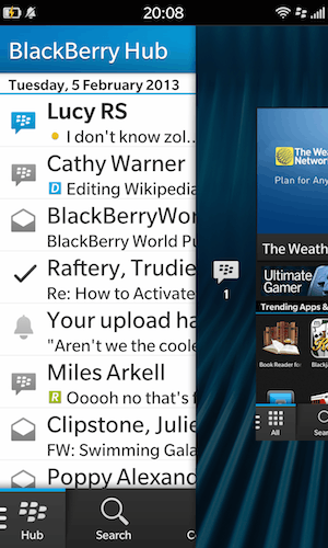 BlackBerry Hub being viewed on a BlackBerry Z10