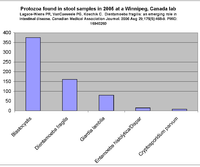 - A Canadian study of samples received in 2005 identified Blastocystis as the most prevalent protozoal infection identified.[94]