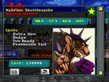 The game features league play in which the player's team competes in the standings and can sign free agents to augment his team or replace killed players.