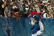 Blue is the official mascot of the Indianapolis Colts professional American football team of the National Football League. He is an anthropomorphic blue horse who wears a white Colts jersey with a horseshoe on the front. He was first introduced on September 17, 2006 in the Colts' first home regular season game against the Houston Texans at the RCA Dome, in which they won 43-24. Indianapolis's victory over the Texans that day proved to be a sign of good things to come, both for Blue and for the team. That season, the Colts won Super Bowl XLI, defeating the Chicago Bears and winning their first Super Bowl since arriving in Indianapolis (second Super Bowl title overall). Since joining the Colts, Blue has served a valuable good luck charm for the team while also entertaining Colts fans.