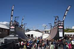 The majority of the music performances take place to the north of Newquay near Watergate Bay. The Men's Pro 5 Star WQS surf competition takes place on Fistral Beach where a skate ramp is built for the BMX and Skateboard competitions.[4] Other sporting events include The Womens Open, WSL Men's Longboard, WSL Women's Longboard, Boys/Girls Pro Junior and Under 12's.