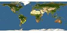 B. atratus nests are usually found above the ground. Nests have been found in an array of different locations, including warm, tropical areas and cold, high altitude environments. Such a diverse geographic distribution illustrates how B. atratus has the unique ability to adapt to a wide range of conditions and pollen sources.[3] Although most nests are built on the ground, nests have been found elevated in trees above the ground.[7] Research indicates that climate dictates whether a particular B.atratus nest will oscillate between polygynous and monogynous cycles. B.atratus are found throughout South America, including Columbia, Ecuador, Brazil, and Argentina and Brazil.[2] The reference map provides a depiction of B.atratus distribution throughout South America.[4]