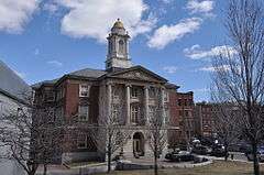 The Traffic Tunnel Administration Building, also known as Boston Police Station Number One, is a historic government building in the North End of Boston, Massachusetts. The building occupies a prominent position facing North End Park off the Rose Kennedy Greenway, and is bounded by the park, North Street, and the trench carrying the exit point of the Sumner Tunnel. The Georgian Revival building was designed by Salem architect John M. Gray and built in 1931. The southern facade, facing the park, was originally used as the administrative facilities for Boston's tunnels, and the eastern facade provided access to the police station. The administration facilities are now used by the local police union, and the police station now houses the police academy.[2]