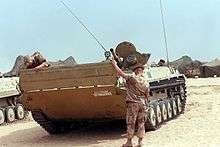 The BMP-1 is a Soviet amphibious tracked infantry fighting vehicle. BMP stands for Boyevaya Mashina Pekhoty 1 (Russian: Боевая Машина Пехоты 1; БМП-1), meaning "infantry fighting vehicle".[11] The BMP-1 was the first mass-produced infantry fighting vehicle (IFV) of USSR.[8][12] It was called the M-1967, BMP and BMP-76PB by NATO before its correct designation was known.[13][14]