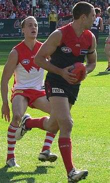 ![]() Brad Miller playing for Melbourne during the 2006 AFL Season | |||