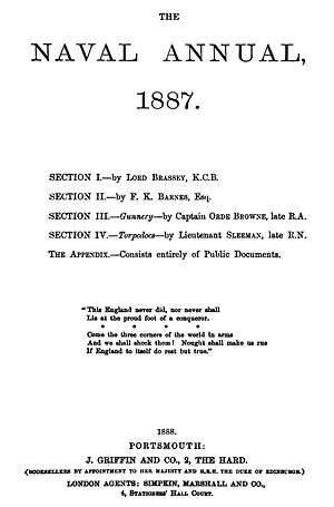 The Naval Annual was a book that sought to bring together a large amount of information on naval subjects, which had previously been obtainable only by consulting numerous publications and chiefly from foreign sources.[1] It was started by Thomas Brassey, 1st Earl Brassey, and was first published in 1886.