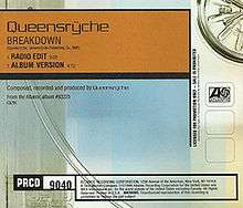 "Breakdown" is a song by the American heavy metal band Queensrÿche. It was released as a single in support of their 1999 album Q2K.