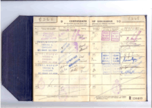 If the seaman held a Discharge Book (a Continuous Certificate of Discharge) which was effectively an ongoing record of their career at sea, the same details would be entered into that book. Seamen hoped to receive a VG/VG rating which indicated "very good" in both capacities because sometimes lower rates such as G-Good or Sat-Satisfactory would be given or even a D-Declined and lower ratings might affect their prospects when next seeking work aboard a choice vessel sailing a choice route.[54][55]