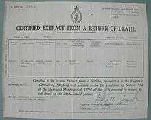 The office of the Registrar General of Shipping and Seamen calculated that 144,000 merchant seamen were serving aboard British registered merchant ships at the outbreak of World War II and that up to 185,000 men and women served in the Merchant Navy during the wartime.[2][3] 36,749 seamen and women were lost by enemy action, 5,720 were taken prisoner and 4,707 were wounded, totaling 47,176 casualties, a minimum casualty rate of over 25 percent. Mr Gabe Thomas, the former Registrar General of Shipping and Seaman (Great Britain) stated that "27 percent of merchant seamen died through enemy action".[4]